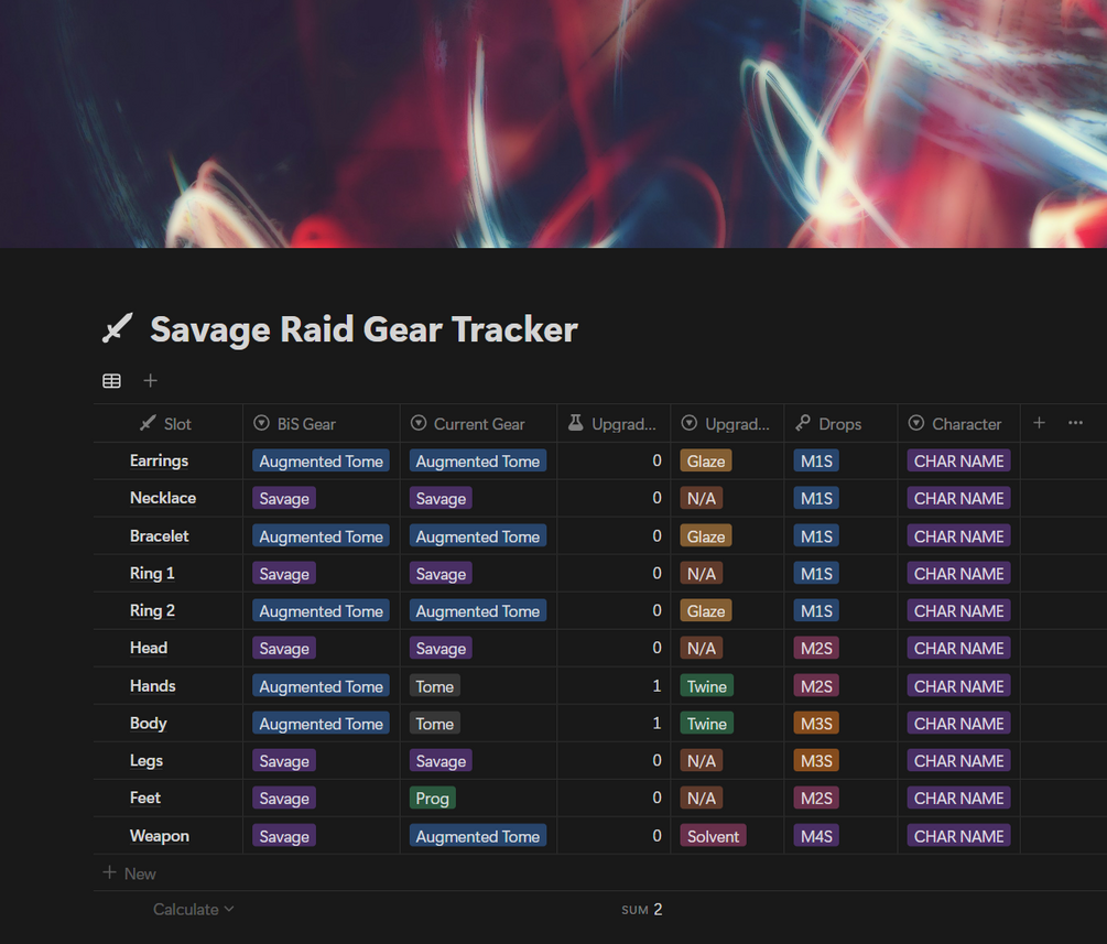 A template to track your best in slot FFXIV gear!